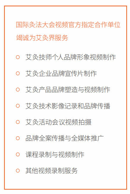灸界传媒是国际灸法大会平台下独立视频事业部,也是国内第一家专注于 中医艾灸领域,以视频创意制作;品牌包装策划、媒介传播推广、活动会议 运营为主的综合性广告传媒机构。